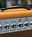 This Wonderland Overdrive 50W head features a Golden Brown Suede covering and Oxblood Gold Stripe grill. We have it paired with a matching Amplified Nation 1x12 oversized cab loaded with a Celestion G12-65. Both head and cab are included in the listing, along with power cable, footswitch and 7-pin DIN footswitch cable.
