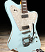 This Fano PX6 in its Blue Boy finish has all the bells and whistles you could want. A Bigsby B5 Vibrato, Lollar Firebird pickups, block inlays, and a tastefully distressed body and neck. This guitar really feels and sounds great.