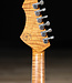 The medium C neck is subtly sanded for a completely non-stick but natural feel down the back of the neck. The string action straddles 4/64” at the 12th fret, good and low without buzz. The fret ends are nicely rounded and the binding work is executed to perfection.
