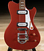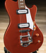 This A-Type in beautiful Sienna Metallic features the CamTail Tremolo system. It’s essentially a modified Bigsby in design and feel, with some serious quality of life upgrades. Andy Powers, of Powers Electric, figured out the travel of each string when using the bar. He designed separate string guides of varying diameter to retain string-to-string intonation. You can play a chord, use the bar, and the chord remains in-tune with itself. The trem is also silky smooth and stays in tune very well with use.