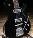 Even with the Mastery vibrato, the guitar weighs just 7lb 2oz. Nice and easy on the shoulder! And the tuning on the guitar is very stable even during use of the vibrato. The nitro finish on the guitar has medium distressing, done tastefully in all the right areas. The body feels nicely worn in where the arm comes across. The neck is smooth and never sticky.