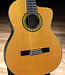 A sterling example of the luthier’s art, these classical guitars that bear the name of Master Luthier Mass Hirade are still built by hand in our Takamine pro facility in Japan. This guitar features a solid cedar top for warmth and broad dynamic range and a solid rosewood back for excellent projection. Gloss natural finish provides durability and adds to the beauty of the guitar. These instruments are designed and built to stand beside the finest classical guitars made today.